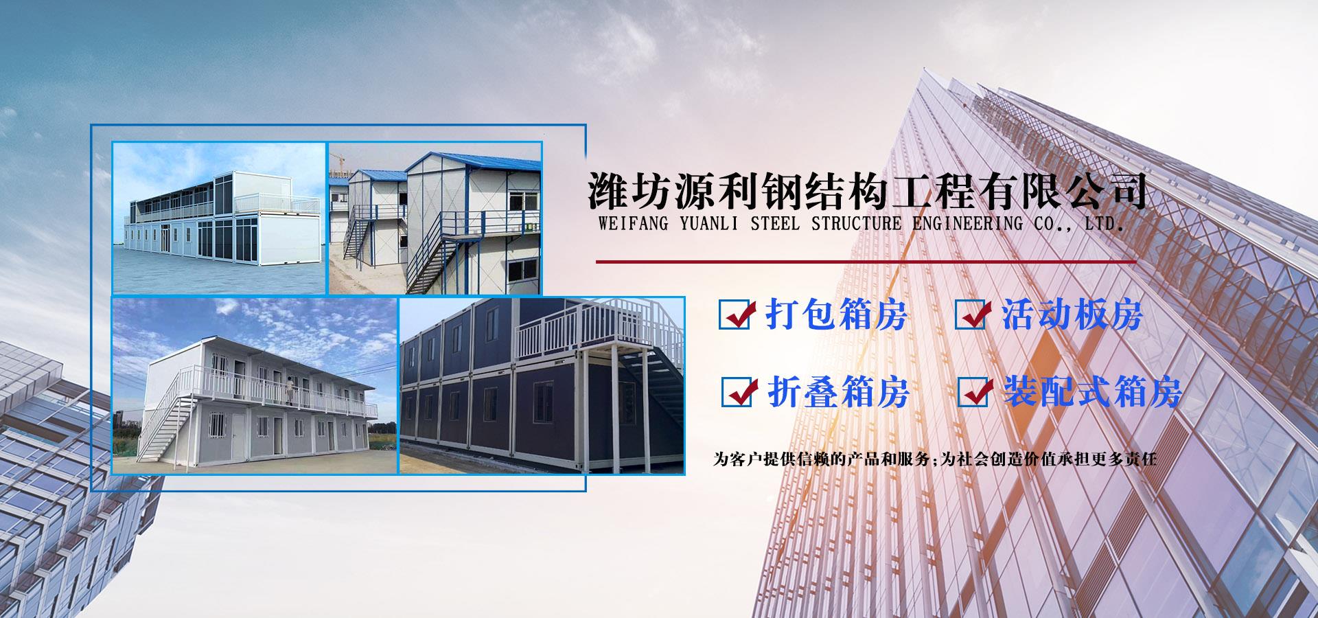 濰坊源利鋼結構工程有限公司成立于2015年,是一家從事活動房屋,鋼結構設計、制作、安裝為一體的公司。公司坐落于風景秀麗的藍寶石之鄉(xiāng)昌樂開發(fā)區(qū),占地約60畝,年加工生產能力到40萬平米,現已發(fā)展成本地較大的鋼結構企業(yè),同時也已跨入集成房屋研發(fā)、推廣企業(yè)行列。公司配備了全套的箱房流水線生產設備,包含了全自動冷彎成型設備、流水自動涂裝線、沖壓型材生產線以及全套的配套設備,標準化、模具化生產加工,年生產5000套打包箱,產品保障。 公司主要產品有:鋼結構工程加工、制作、安裝;各類活動板房、打包箱房、裝配式箱房、折疊箱房、圍擋、料棚、異型H型鋼、屋面板、墻面板、樓承板,C型鋼,Z型鋼;馬路隔離護欄等相關產品。